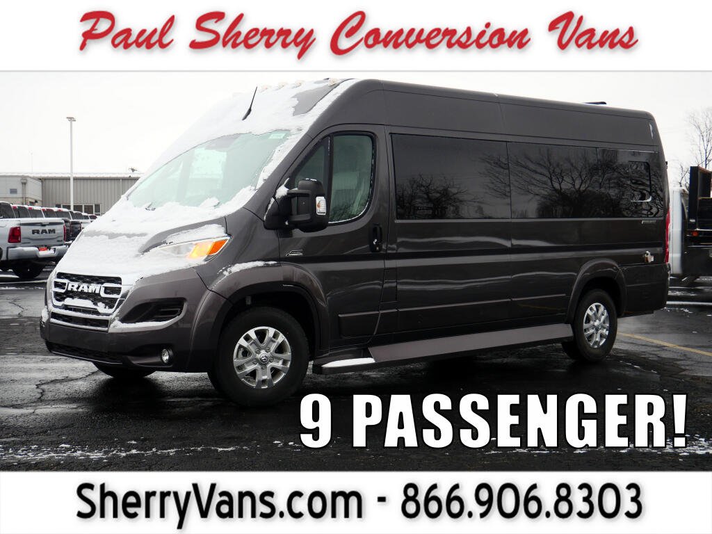 -- 9 PASSENGER LUXURY VAN! Stand Up Inside! Extended Body -- Extra Interior Space! GPS Navigation - Premium Leather Seats - Swivel Front Captain Chairs - Front Overhead Storage Shelf - Push-Button Ignition - Power/Heated Mirrors - Chrome Grille - Forward Collision Warning - Pedestrian/Cyclist Emergency Braking - Blind Spot Monitoring - Crosswind Assist - Rain-Sensing Wipers - Rear Parking Camera - 10.1-Inch Touchscreen Radio Display - Android Auto - Apple CarPlay - Bluetooth For Phone - Satellite Radio - Wireless Charging Pad - USB Charge Ports - 4G LTE Wi-Fi Hotspot - Leather-Wrapped Steering Wheel - 16-Inch Painted Alloy Wheels - Class IV Towing Receiver - Automatic Headlamps - Automatic High-Beam Headlamp Control - Fog Lamps - AND MORE! Visit WWW.SHERRYVANS.COM to see more pictures and a detailed HD video of this custom New Granite Crystal Metallic Clearcoat 2023 Ram ProMaster 3500 159WB Extended Body High-Roof Luxury Passenger Van for sale in Piqua, Ohio. Do you know that we offer competitive financing options and can assist with delivery? These are only some of the ways Paul Sherry goes above and beyond! *See Dealer To Confirm Specific Equipment* ** The listed price includes all available discounts and rebates within the Great Lakes Business Center.