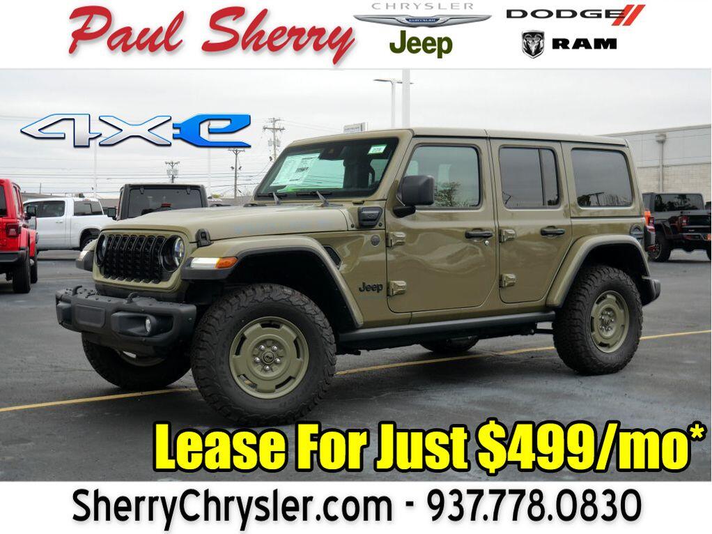 -- Willys '41 4xe Special Edition! Special '41 Paint! Gas & Electric Hybrid! 22 Miles All Electric Range! 4X4 - 4.10 Axle Gears - E-Locker Rear Differential - Remote Start - Heated Premium Cloth Seats - Heated Leather-Wrapped Steering Wheel - Push-Button Ignition - Body-Color 3-Piece Hard Top - Power/Heated Mirrors - Rubicon Highline Front Fenders - Rock Rail Sill Protectors - Front/Rear Steel Bumpers - Adaptive Cruise Control - Forward Collision Warning - Rear Parking Camera/Sensors - 12.3-Inch Touchscreen Radio Display - Android Auto - Apple CarPlay - Bluetooth For Phone - Assignable Auxiliary Power Switches - USB Charge Ports - Universal Garage Door Opener - 17-Inch Premium Painted Wheels - Tire Fill Alert - Class II Towing Receiver - Automatic LED Reflector Headlamps - Automatic High-Beam Headlamp Control - LED Fog Lamps - AND MORE! Visit WWW.SHERRYCHRYSLER.COM to see more pictures and a detailed HD video of this 2025 Jeep Wrangler Willys '41 4xe Special Edition 4WD Convertible SUV for sale in Piqua, Ohio. Do you know that we offer competitive financing options and can assist with delivery? These are only some of the ways Paul Sherry goes above and beyond! *See Dealer To Confirm Specific Equipment* ** The listed price includes all available discounts and rebates within the Great Lakes Business Center.